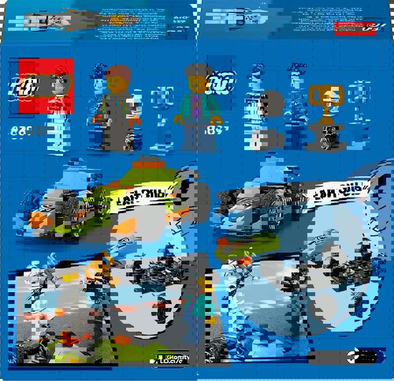 Hayali oyunlar için inşa edilebilen oyuncak bir araç içeren LEGO® City Yeşil Yarış Arabası oyun setiyle yarış eğlencesi başlasın.