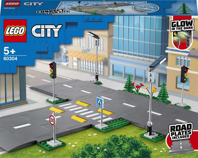 geçidi olan 5 LEGO® Yol Zeminine, ayrıca karanlıkta parlayan sokak lambalarına,