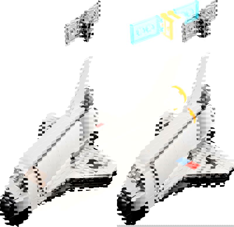 Uzayabilen bir kol üzerinde bir uydu içeren açılan bir bölmesi olan bir Uzay Mekiği oyuncağı içerir. Ekstra eğlence için uydu ayrılabilir.