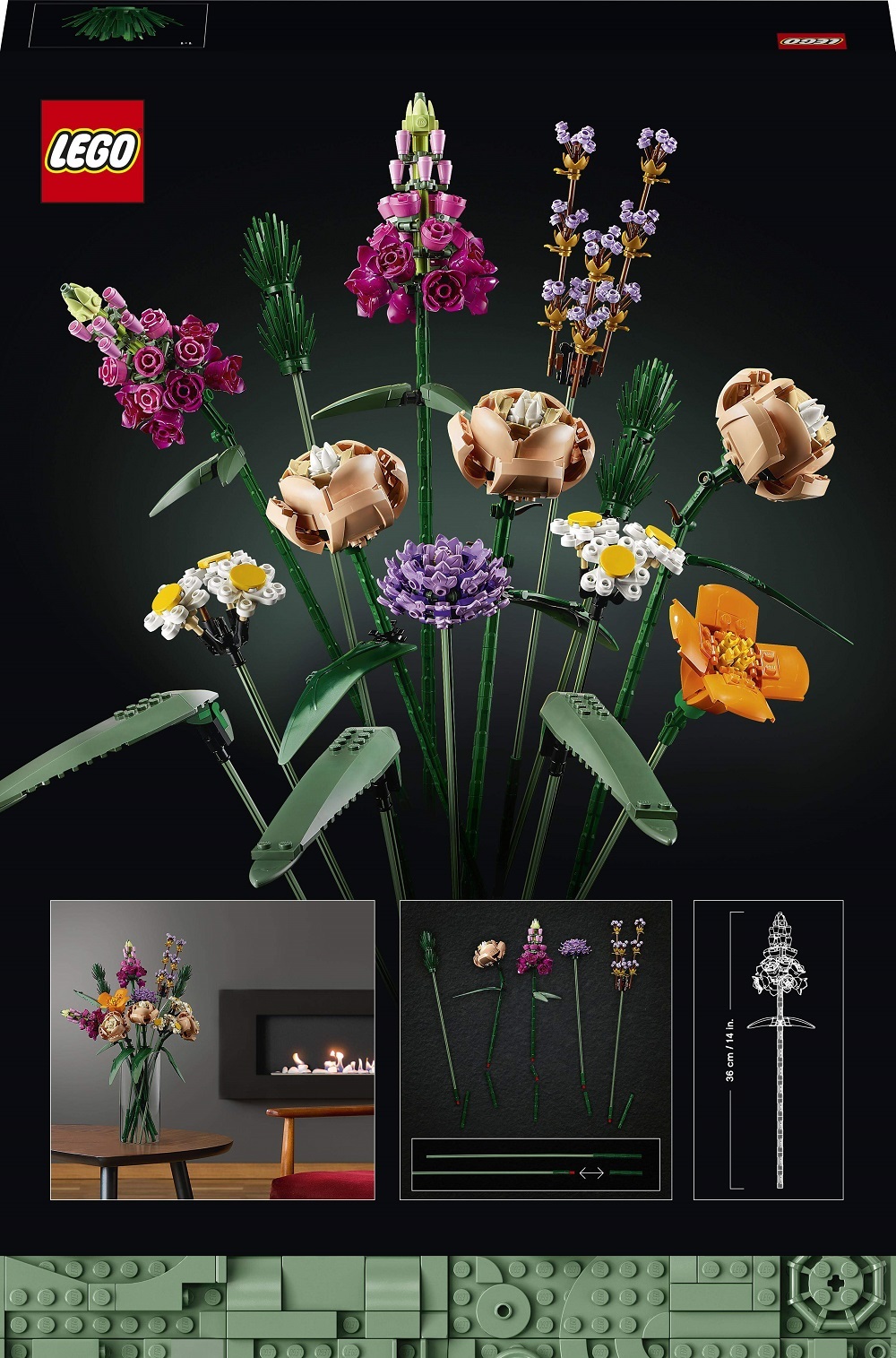 • İlk LEGO Çiçek Buketi olan bu set, yetişkin LEGO hayranlarının çok seveceği yeni renkler ve şekiller içerir.