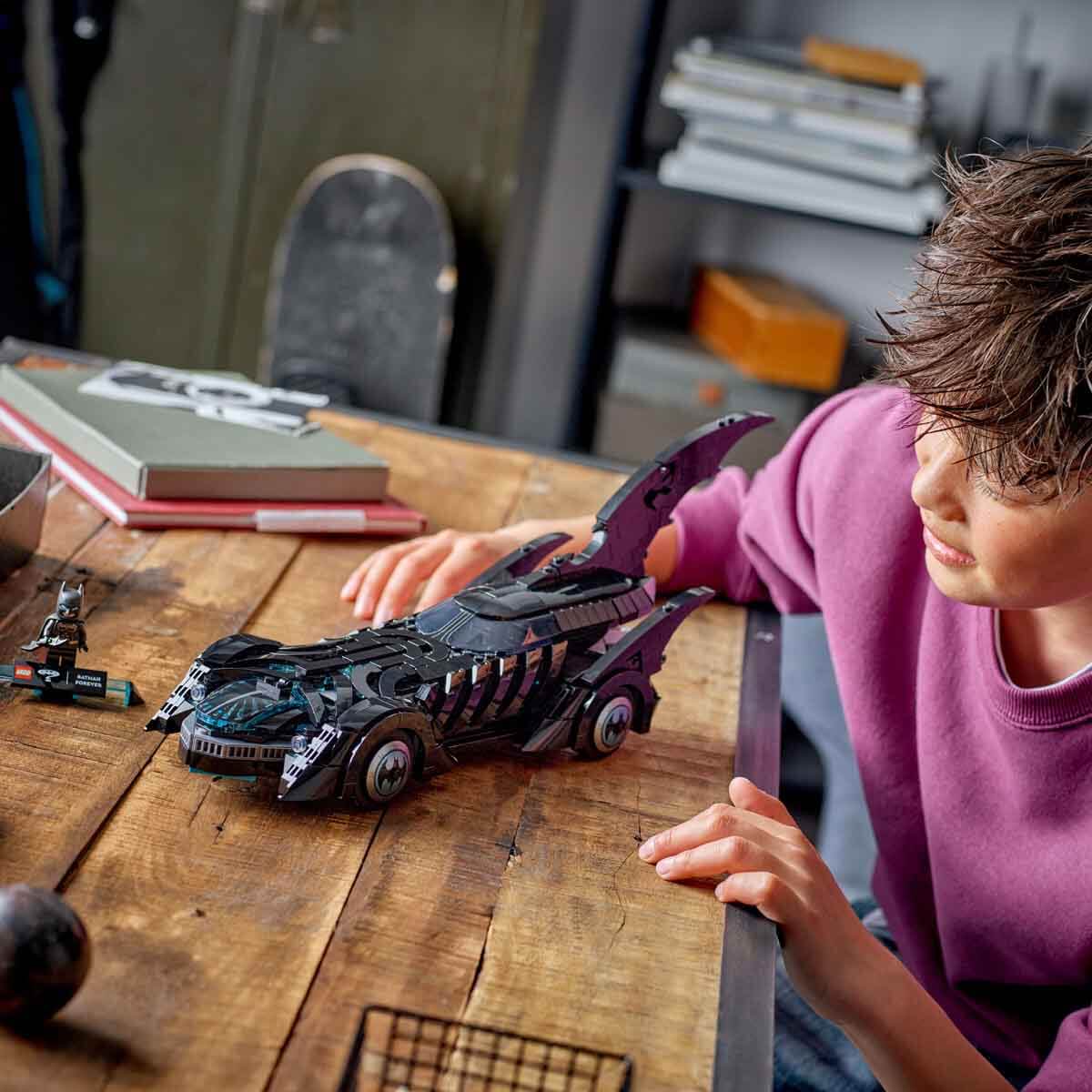 Batman Forever filminden simgeleşmiş arabanın bu gerçekçi rekreasyonu, kalıplı ön cam, hareketli tekerlekler, süslemeler ve ayrıntılı iç kısmı bulunan açılan bir kokpite sahip. Araç ayrıca kendi özel standına sahip bir Batman mini figürü ile birlikte gelir. Daha fazla dijital eğlence için model severler, kullanımı kolay LEGO Builder uygulaması ile modelleri yakınlaştırabilir, 3 boyutlu olarak döndürebilir ve ilerlemelerini takip edebilir. 909 adet parça içerir.