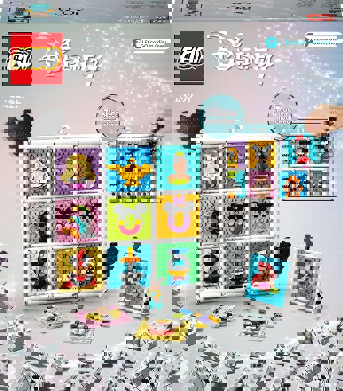Sette 12 adet 8x8 zemin, resim çerçevesi, asma parçaları, 12 ikonu aynı anda inşa etmek için çok sayıda karo ile birlikte özel bir Disney Mickey Fare minifigürü ve ekstra ilham veren yapım talimatları bulunur. Çocuklar inşa ederken LEGO Builder uygulamasıyla kolay ve sezgisel bir maceranın da keyfini çıkarabilir. Modelleri 3 boyutlu yakınlaştırabilir ve döndürebilir, setleri kaydedebilir ve ilerlemelerini takip edebilirler.