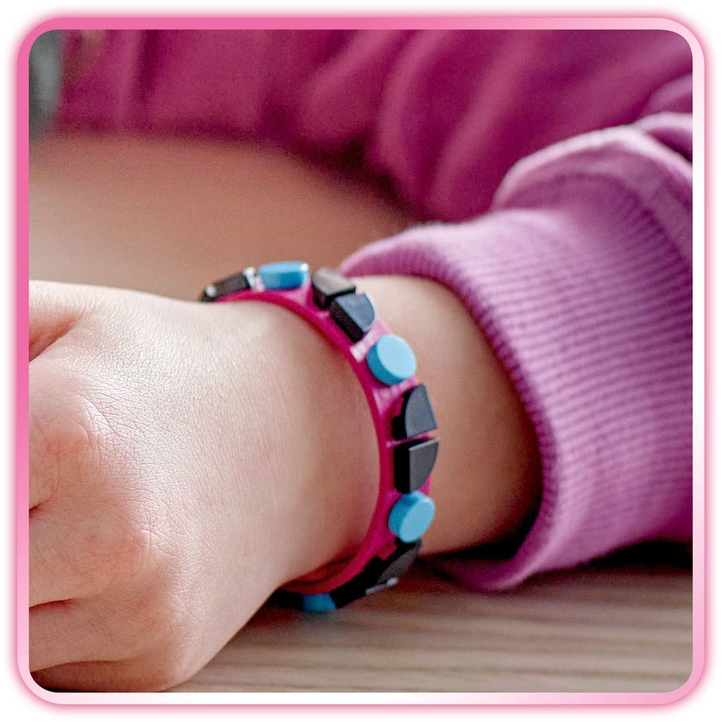 paylaşmak için çok sayıda süsleme parçasına sahip renkli bir bileklik içerir.