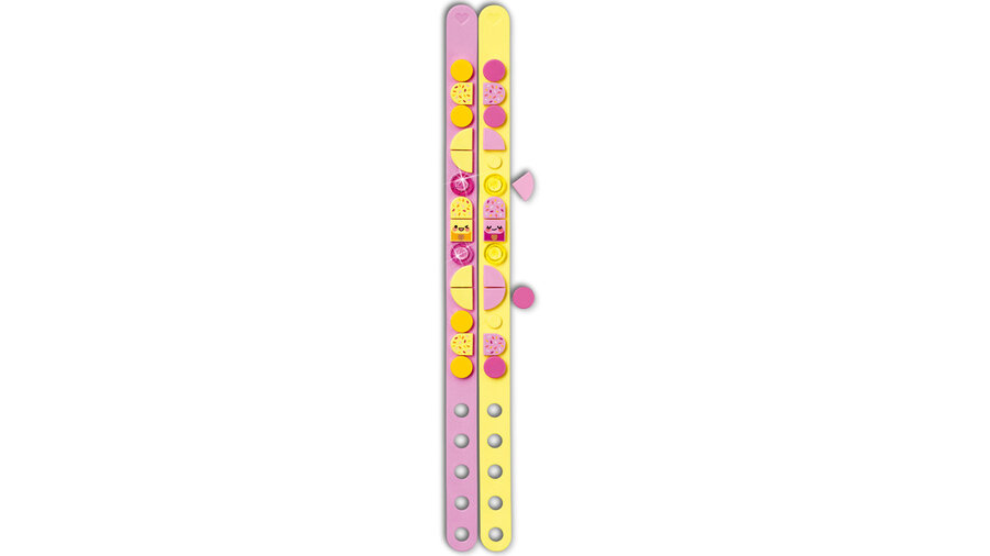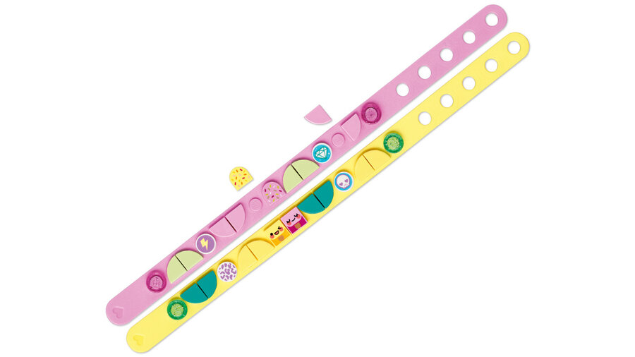 Paketi aç, tek sıralı bileklikleri düzleştir ve renkli LEGO DOTS parçalarını takmaya başla.