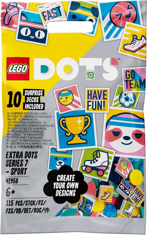 tekrarlayın – Bu LEGO® DOTS Ekstra DOTS Seri 7 – SPOR (41958) süsleme setiyle