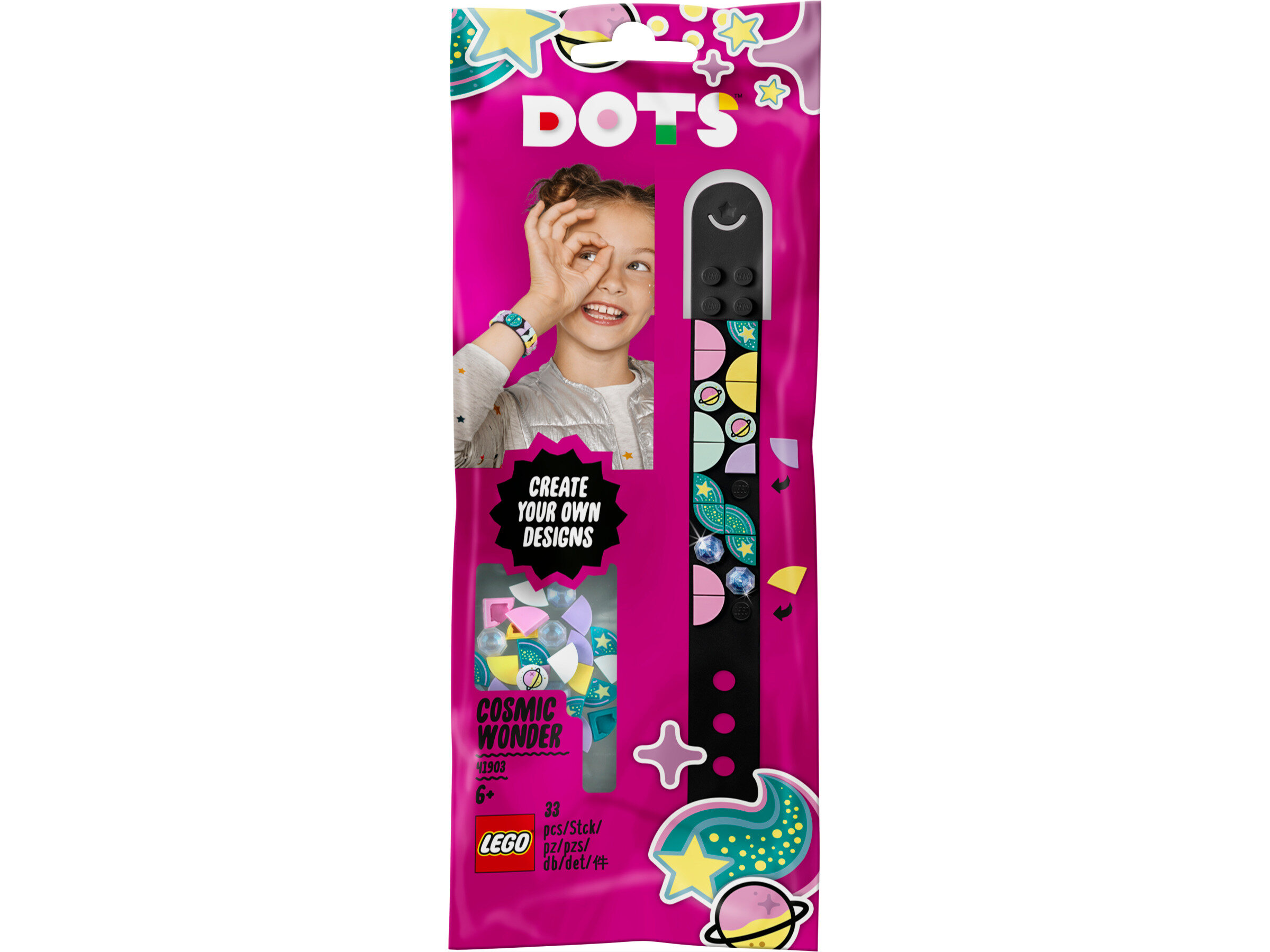 Bu değerli LEGO Dots Uzay Harikası Bileklik ile yıldızlara layık bir şey tasarla ve kendi kozmik takını yap!
