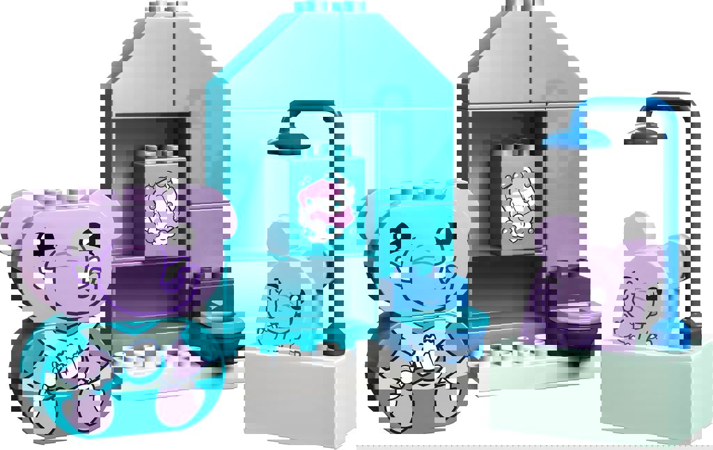 banyoda yeni LEGO® DUPLO® hayvan arkadaşlarına katılarak yavru fili temizleme