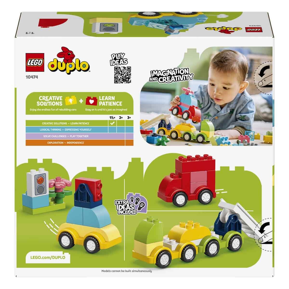Oyuncak araçları tekrar tekrar inşa edin! Küçük çocuklar için LEGO DUPLO İlk Yaratıcı Araçlar (10474) eğitici oyuncağı, çok sayıda araç ve eğlenceli trafik hikayeleri oluşturmak için 42 parça ve 3 dingil içerir.