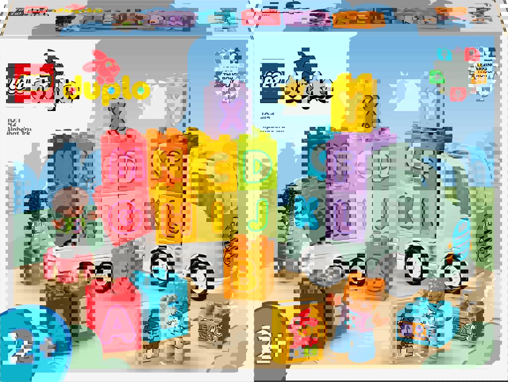bir kamyon, 2 LEGO® DUPLO® figürü ve 26 adet harfli yapım parçası içerir.