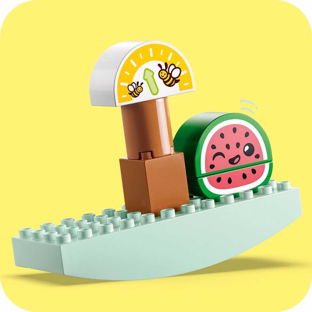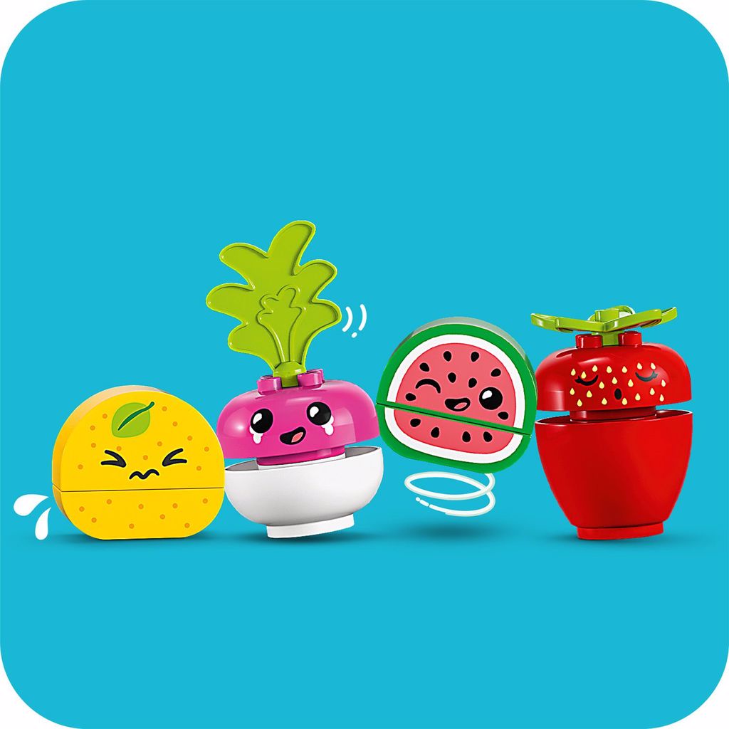 Tüm LEGO DUPLO setleri, kendini ifade becerisini geliştirmek için tasarlanmıştır; bu oyunda her bir yiyecek, yaratıcı oyuna hayat vermek için farklı bir yüz ifadesine sahiptir!