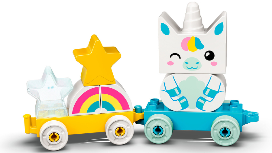 Bu sevimli çekmeli tek boynuzlu at, küçük çocukları hayal gücüne dayalı oyunlar oynamaya teşvik ederken temel yapım becerilerini geliştirmelerini, şekilleri ve