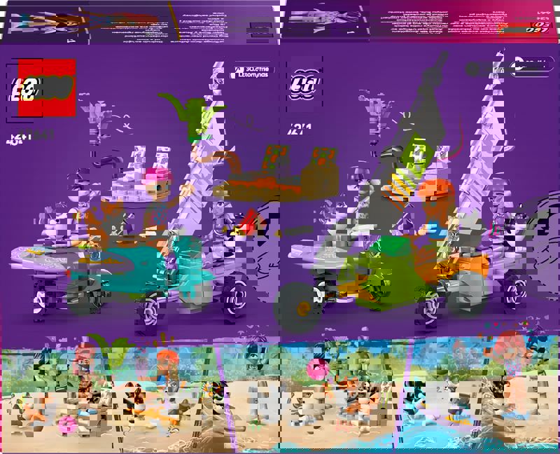 LEGO® Friends Sörfçü Köpekler ve Scooter Macerası (42641) setiyle çocukları kendi plaj maceralarını yaratmaya teşvik edin. Bu rol yapma oyuncağında mini sörf tahtası aksesuarı, scooter, kara yelkenlisi ve şezlonglar bulunur. Set ayrıca yaratıcı oyunlar için 2 LEGO Friends mini bebek ve 2 corgi figürü içerir. Bu set, yaratıcı oyunları seven çocuklar için harika bir hediye fikridir.