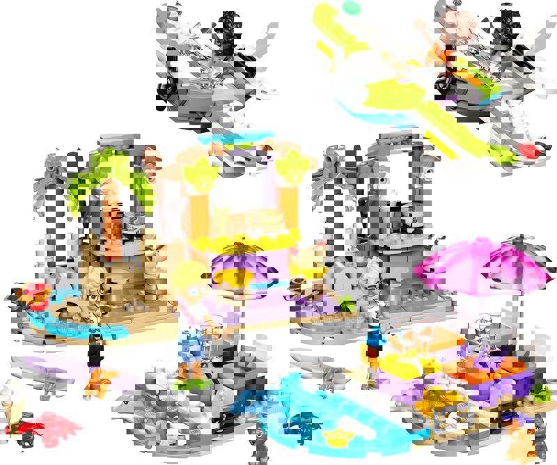 Bu rol yapma oyun setinde, çocukların dönen pervaneli bir deniz uçağı, sörf tahtalı dinlenme alanı ve kumdan kaleleri, koltukları ve dondurma aksesuarları olan bir plaj kafe yapmak için ihtiyaç duyacakları her şey var. Modeller sürat teknesi oyuncağına, açık hava oturma alanına ve pizza fırını olan bir pizzacıya dönüştürülebilir. Bu yapım oyuncağında rol oyunları için 2 mini bebek, köpek ve yunus figürleri bulunur.
