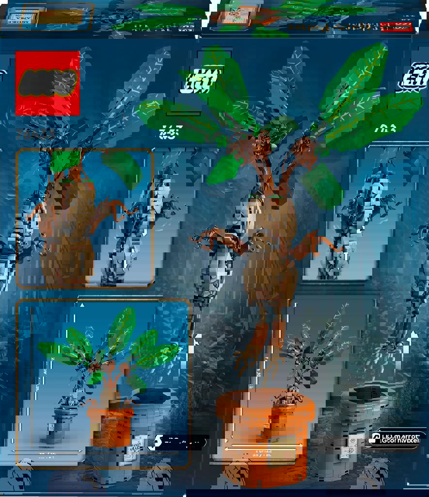 hareketli bir Adamotu oyuncak modeli ve inşa edilebilen bir saksı içerir.