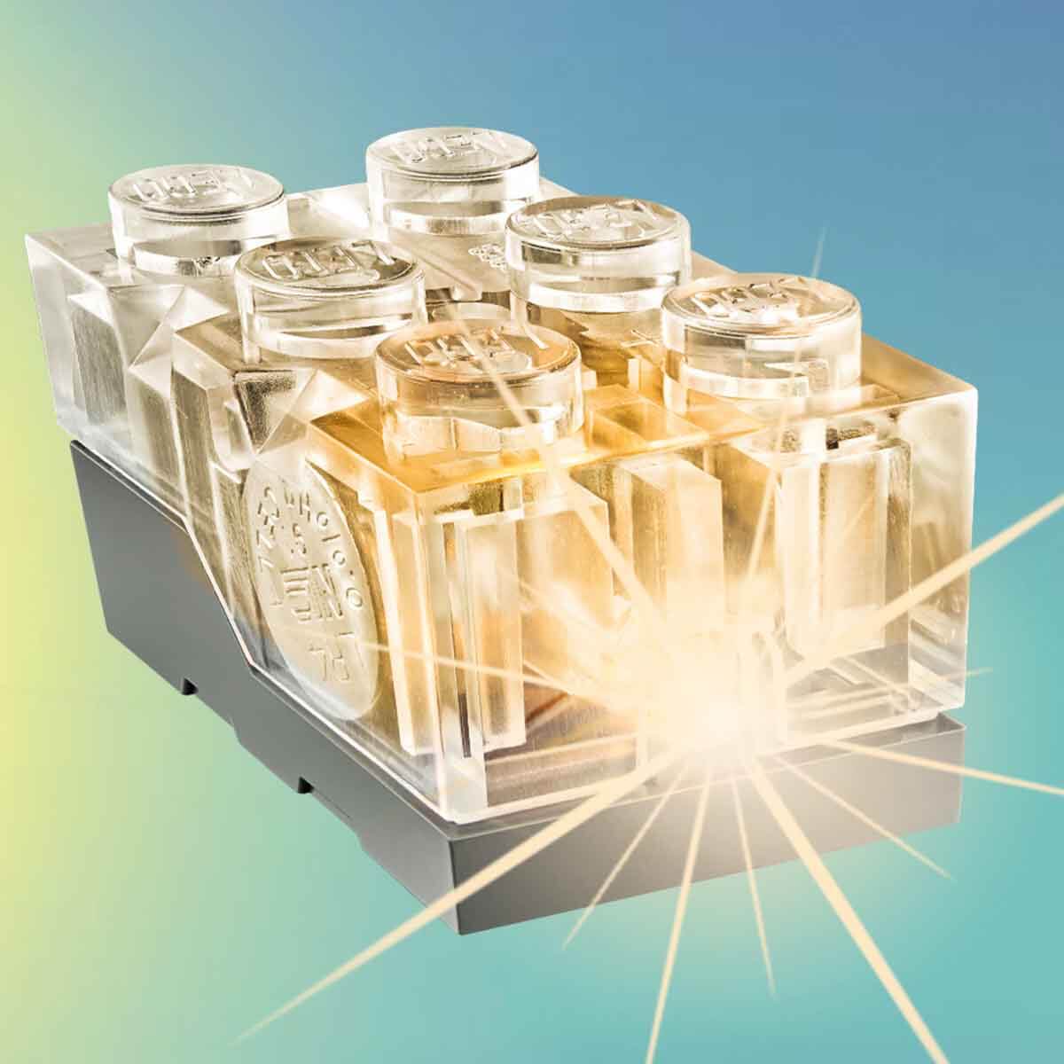 Lego ışıklı yapım parçası projektörü… Lego ışıklı yapım parçasını çalıştırarak (pil dahildir) üç kardeşin hikayesi’nden görüntüleri mutfak duvarına yansıtın.