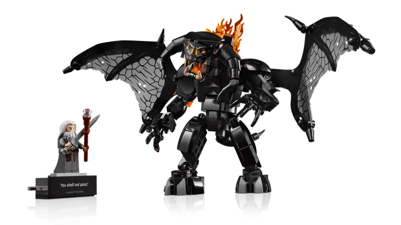 ‘You Shall Not Pass’ (Buradan Geçemezsin) yazılı bir levhanın olduğu model, korkusuz duruşuyla Gri Gandalf’ı ve alevlerden oluşan bir duvarın önünde güçlü kanatlarını açmış Balrog’u betimliyor. Her iki karakter de ayrılabilir ve Gandalf minifigürünün bir asası ve kılıcı bulunur, ateşli kırbacı olan Balrog figürü ise hareketli uzuvları ve kanatlarıyla dinamik bir sergileme modeli oluşturur.