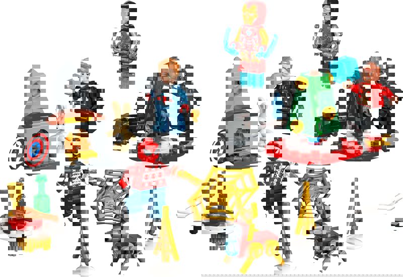 İnşa edilebilen oyun deneyimleri arasında bir Quinjet, jet çantası, buz hokeyi takımı, Hydra Treni ve Marvel Sinema Evreninden esinlenen çok daha fazlası var.