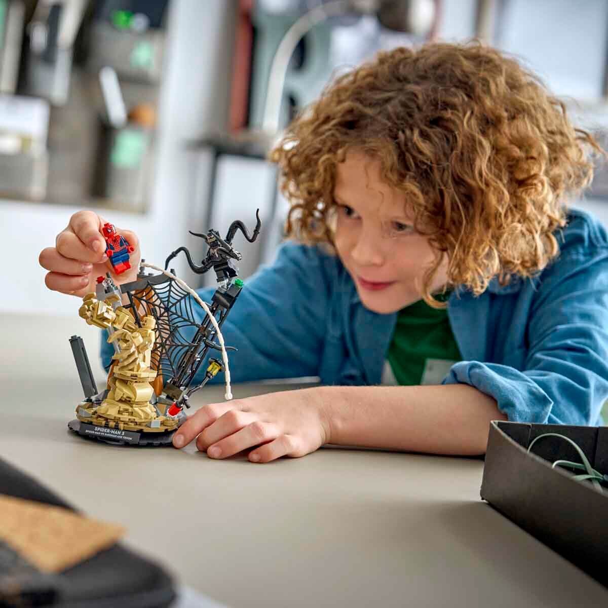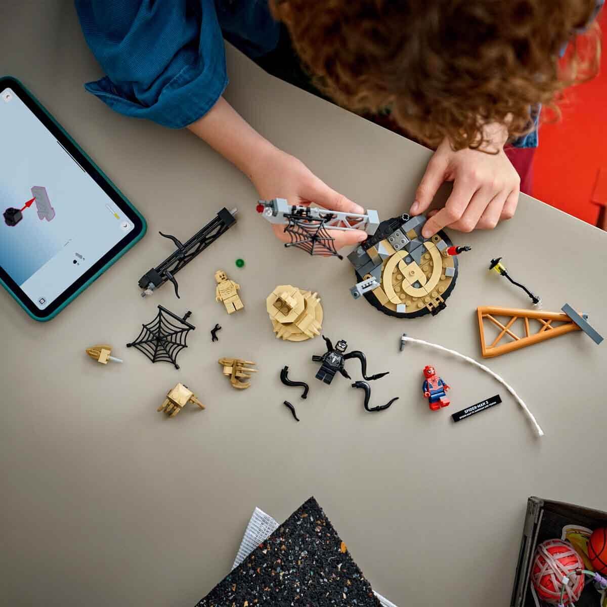İnşa edilebilen set, filmden muhteşem bir karakter kadrosu ve çok sayıda interaktif parça içerir: Örümcek Adam, ağ halatıyla kuleden aşağı sallanır; Kum adam, büyük koluyla molozların içinden yükselir ve Venom, 4 hareketli dokunacıyla saldırır. Çocuklar, sağlam tabanı ve isim levhasıyla LEGO modelini oda dekoru olarak sergileyebilir ya da mini figürleri ayırarak kendi oyun hikayelerini oluşturabilir. Bu set, küçük Süper Kahramanların doğum günleri, LEGO severler ve Örümcek Adam hayranları için harika bir hediye fikridir. LEGO Builder uygulamasıyla çocuklar seti güvenle inşa edebilir, kolay anlaşılır dijital talimatlarla modeli yakınlaştırabilir, 3 boyutlu döndürebilir ve ilerlemeyi takip edebilir. Yapım setinde 201 parça bulunur.