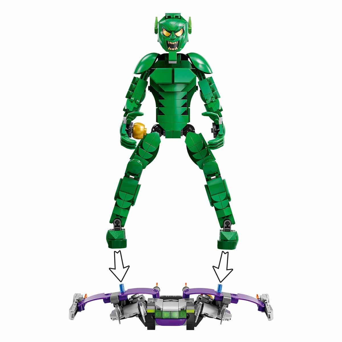 karakteri yapım oyuncağı olan hareketli LEGO Marvel Green Goblin Yapım Figürü