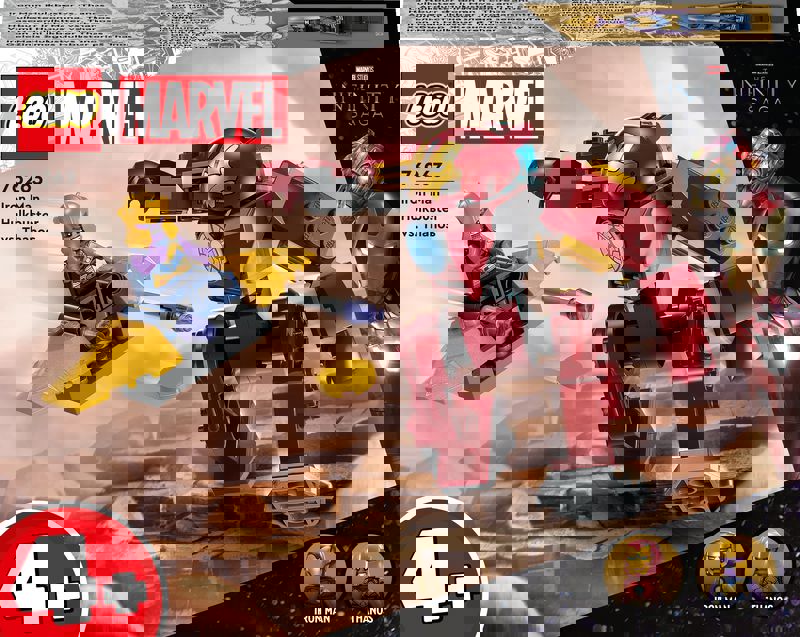 Marvel Studios'un Avengers: Sonsuzluk Savaşı'na dayanan bu oyun seti, Süper Kahraman Iron Man ve zırhını, süper kötü Thanos ve uçağıyla bir araya getiriyor.