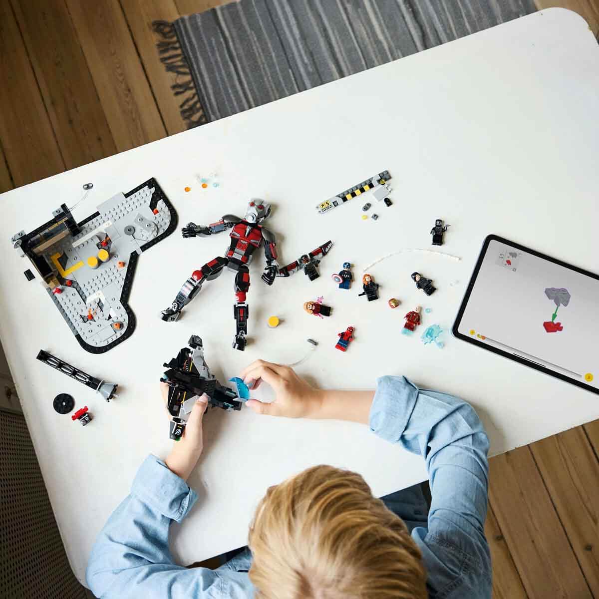 Büyük, tam eklemli bir Ant-Man LEGO figürü ve 8 mini figür
