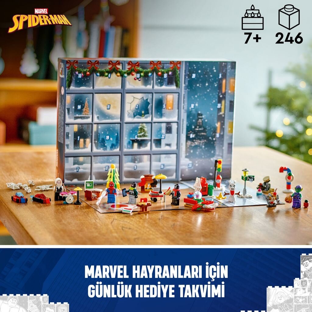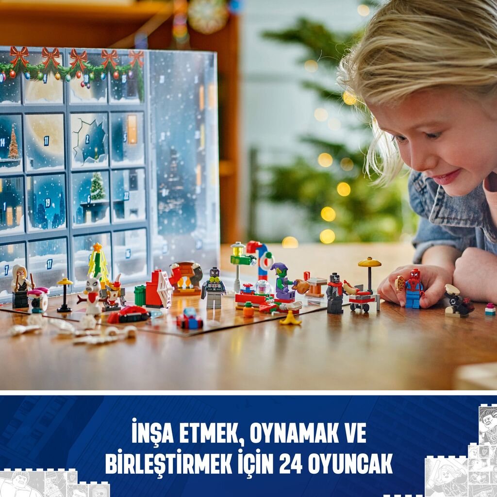 içeren LEGO Örümcek Adam 2024 Yılbaşı Takvimi.