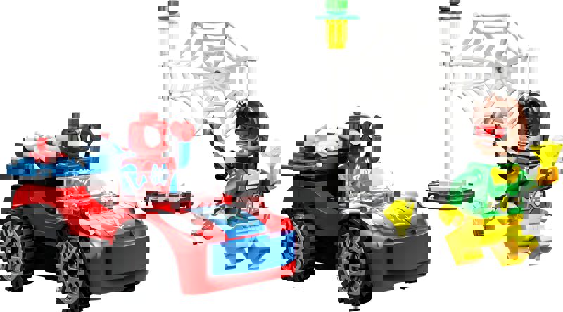 Bu sette Örümcek Adam ve Doktor Oktopus olmak üzere 2 minifigür, ayrıca Örümcek Adam’ın karanlıkta parlayan 2 ağ parçasına sahip arabası bulunur. Özel Başlangıç Yapım Parçası araba şasisi, minikleri Örümcek Adam’ın arabasını “kendi başlarına” yapmaya teşvik eder.