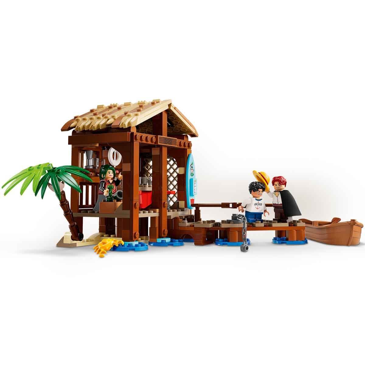 Çocuklar, plaj mağazasının çatısını çıkararak eğlence dolu iç kısma erişebilir. İçeride, mağazayı işletmek ve müşterileri eğlendirmek için aksesuarlar bulacaklar. Duvara asmak için bir ‘Aranıyor’ posteri ve diğer LEGO ONE PIECE modellerinde (ayrı satılır) bulunan ‘Aranıyor’ posterleri için yer bulunur. Dışarıda, zincir ile iskeleye bağlı bir korsan teknesi oyuncağı vardır.