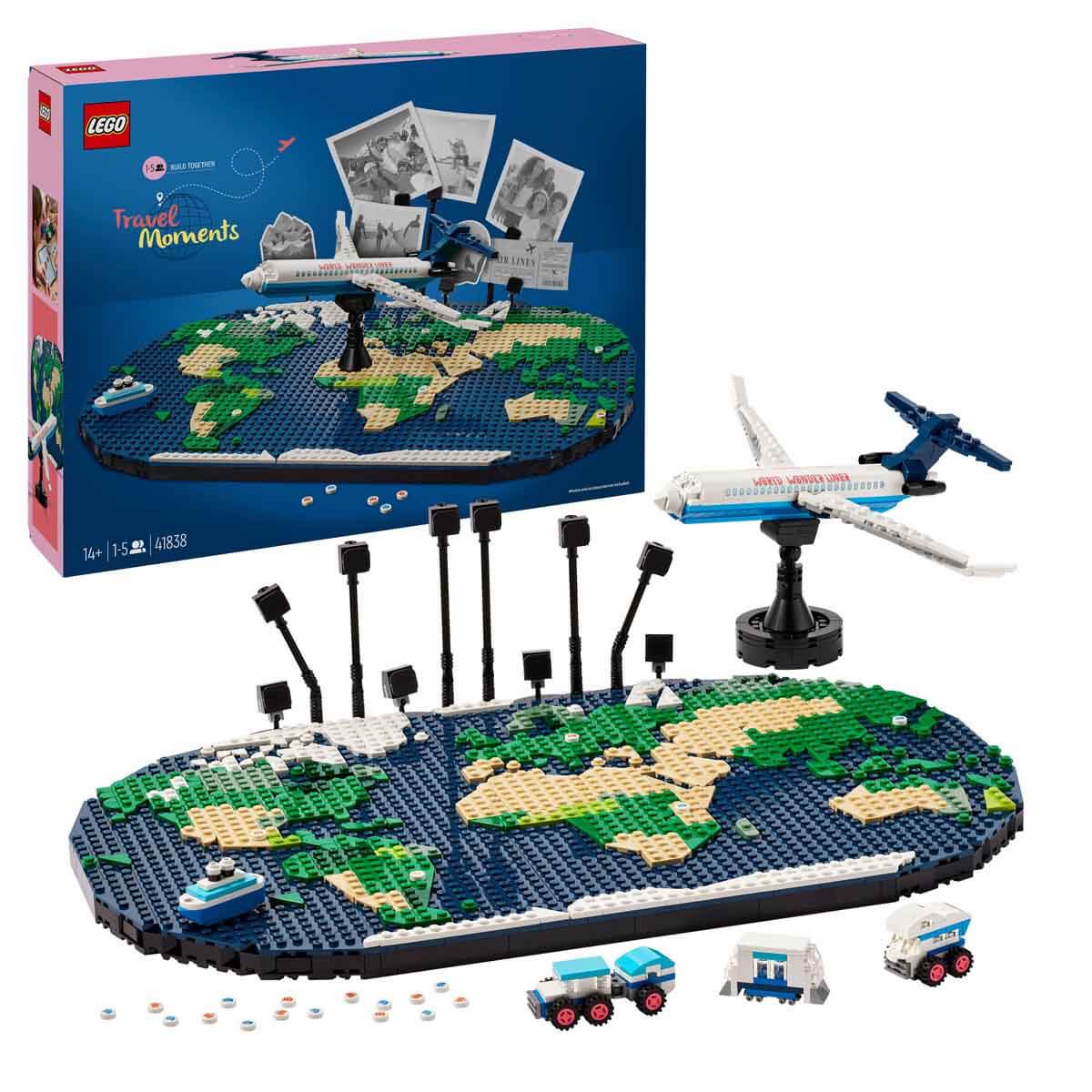 Grup eğlencesi için seyahat anıları seti… Bir dünya haritası ve parçalarla inşa edilebilen jet içeren Seyahat Anları yapım setiyle, ailece yapım aktivitelerini teşvik edin ya da bir sonraki maceranızı planlayın.