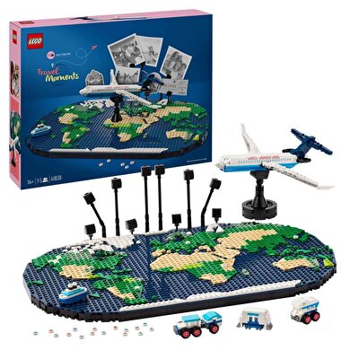 Macerayı seven gezginler ve aileler için eğlenceli bir hediye olan bu yaratıcı LEGO oyun setinde inşa edilebilen bir dünya haritası, bir jet, 4 mikro model araç, 20 konum karosu, 10 fotoğraf tutucu ve 5 yapım talimatı kitapçığı bulunur.