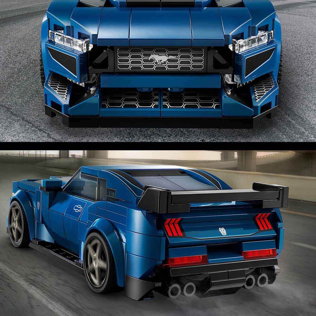 Ford Mustang oyuncak araba, karakteristik ızgara, farlar, egzoz boruları, Ford logoları ve vites kolu ve panosuyla detaylı iç kısım gibi çok sayıda orijinal tasarım özelliğine sahiptir. İnşa edilebilen LEGO arabasında ayrıca çıkarılabilir bir tavan ve çocukların direksiyona oturtarak heyecan verici aksiyon oyunları oynamaları için kapüşonlu Dark Horse üstü giymiş bir mini figür bulunur.