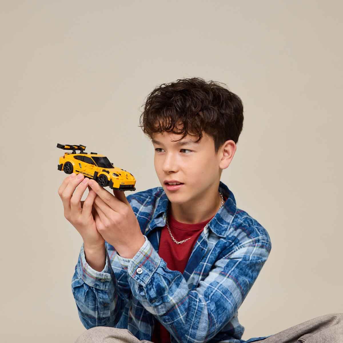 En simgeleşmiş spor araba serilerinden birinin en yeni modeli olan, parçalar ile yapılan çocuklara yönelik bu mini araba modeli, hem sokakta hem de pistte sürülen gerçek hayattaki araçtan pek çok tanıdık detayı içeriyor.