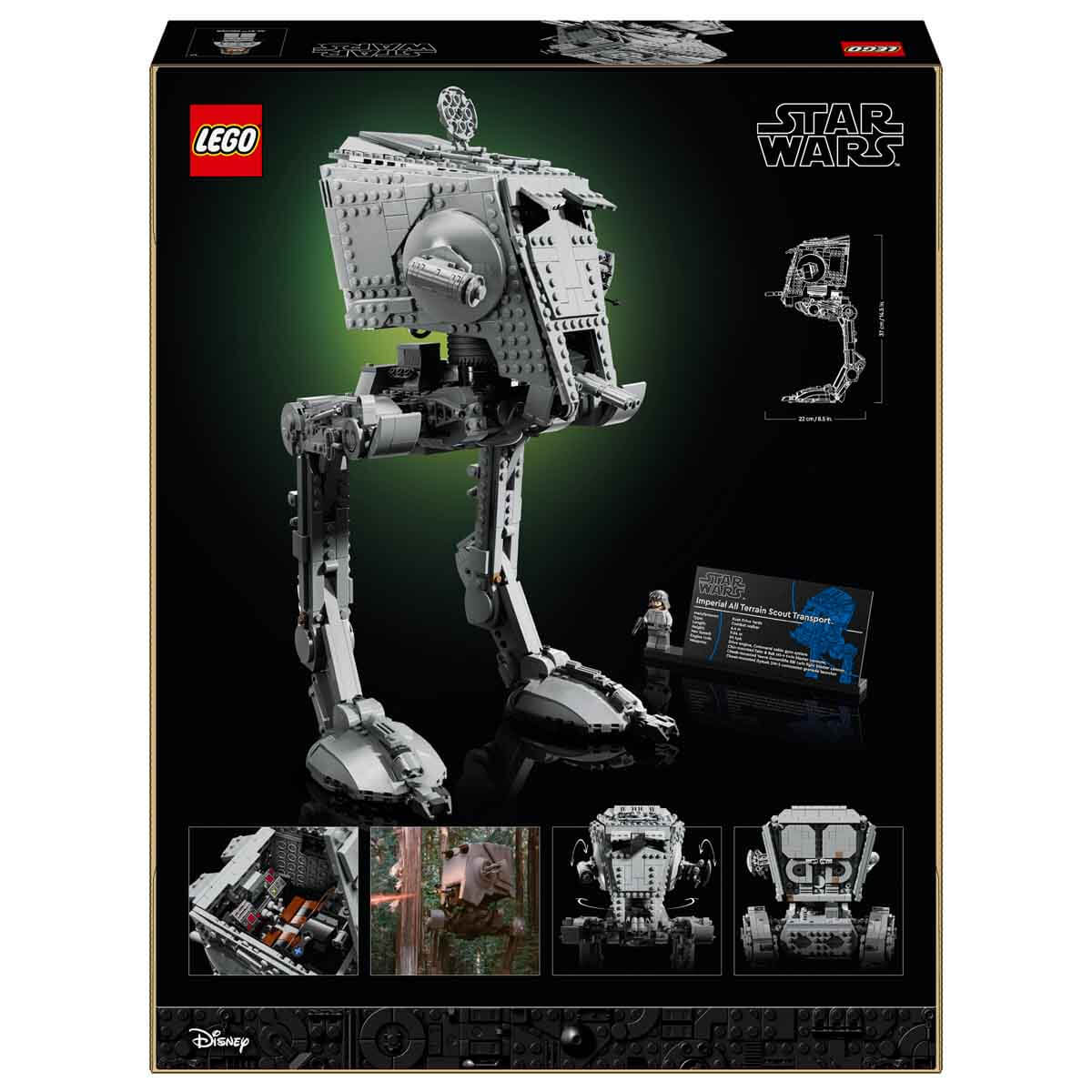 Parçalar ile yapılan bu koleksiyonluk araç, beraberindeki bilgi levhası ve (kolları İmparatorluk arması baskılı) benzersiz LEGO Star Wars AT-ST Sürücüsü ile dramatik bir sergileme modeli oluşturur. Bu set, sürükleyici, tatmin edici ve yaratıcı bir meydan okuma sunar ve inşa edilebilen büyük ölçekli AT-ST Walker modeli, tüm hayranların LEGO Star Wars UCS koleksiyonlarına güzel bir katkı sağlar. Set, 1513 parçadan oluşur.