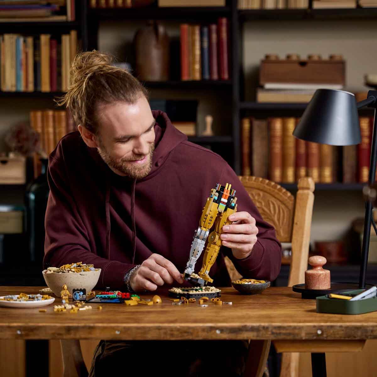 Star Wars hayranları için eğlenceli, dekoratif bir model! Bu 1138 parçalı setteki parçalarla yapılan C-3PO LEGO droid figürünün boyu 38 cm’dir.