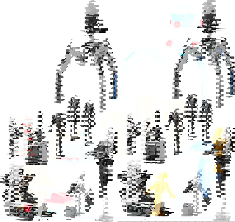 Aksiyonlu oyunlar için simgeleşmiş silahlarıyla 4 LEGO Star Wars mini figürü ve 5 LEGO figürü içerir: Bir Klon Şok Trooper, 3 Klon Trooper, 3 Süper Savaş Droidi ve 2 Savaş Droidi. Bu LEGO yapım seti ayrıca 2 Klon Trooper için mermi atan bir Star Wars hız motoru ve Savaş Droidi için inşa edilebilen bir STAP motoru içerir. 3 füze atıcılı bir tri-droid ve mermi atıcılı bir savunma noktası, daha da fazla yaratıcı oyun olasılıkları ekler.
