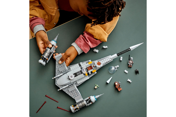 • Oyunlara ilham veren özellikler – Starfighter bir minifigür kokpitine, Grogu için yolcu alanına, küçük bir kargo bölmesine, bir yaylı atıcıya ve bir sürü orijinal hasarlı detaya sahiptir