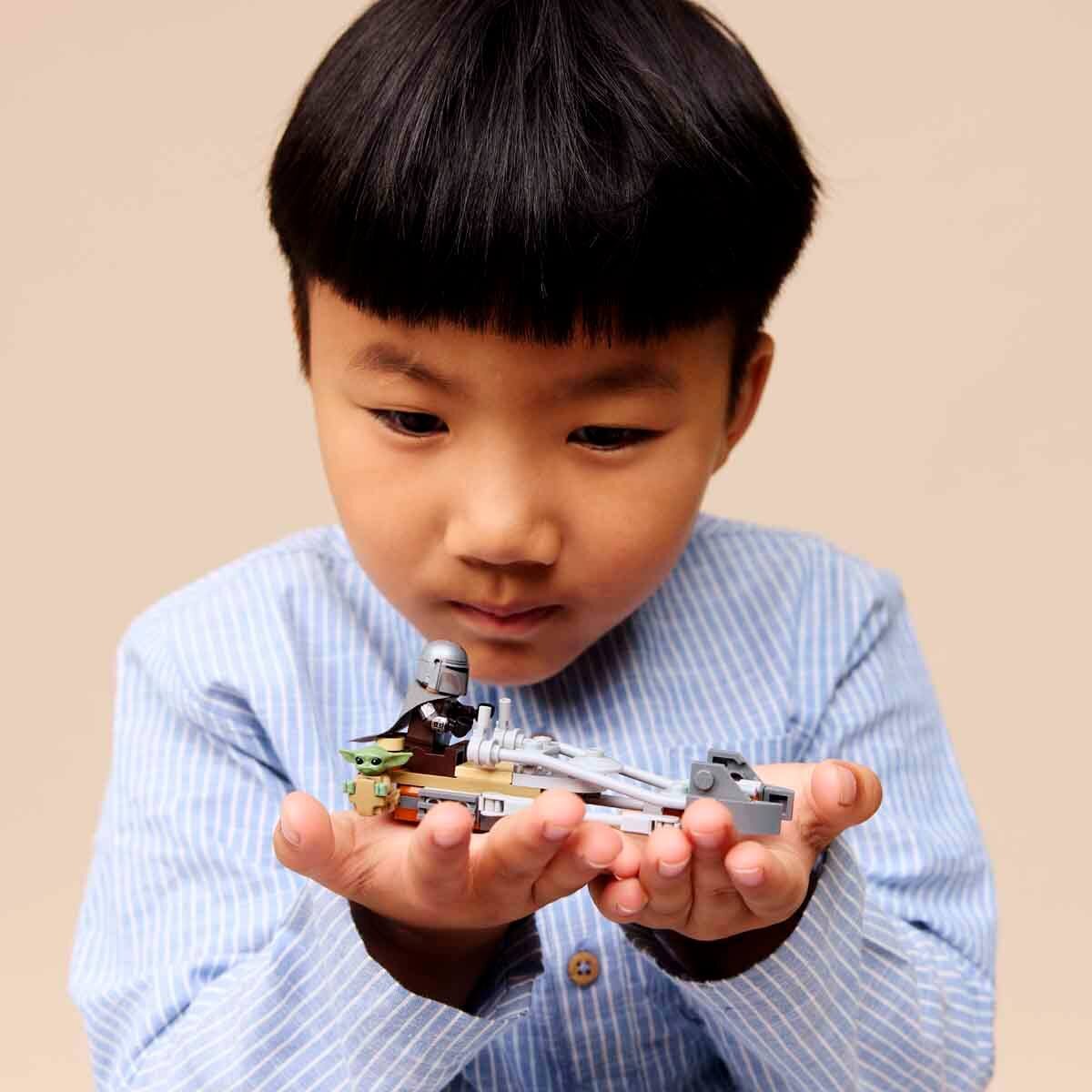 Oyuncak araç yapım seti (75436); Mandalorian ve Grogu’nun hız motoru ile çocukların hayal güçlerini harekete geçirerek Star Wars: The Mandalorian 1. Sezon maceralarını canlandırmaya teşvik edin.
