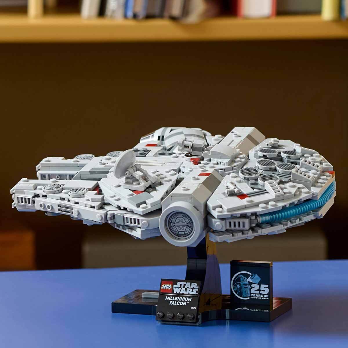 İnşa edilebilen stant, bir isim levhasına ve LEGO® Star Wars™ 25. yıl dönümü yapım parçasına sahiptir ve Millennium Falcon’u dinamik bir açıyla sergilemek için tasarlanmıştır.
