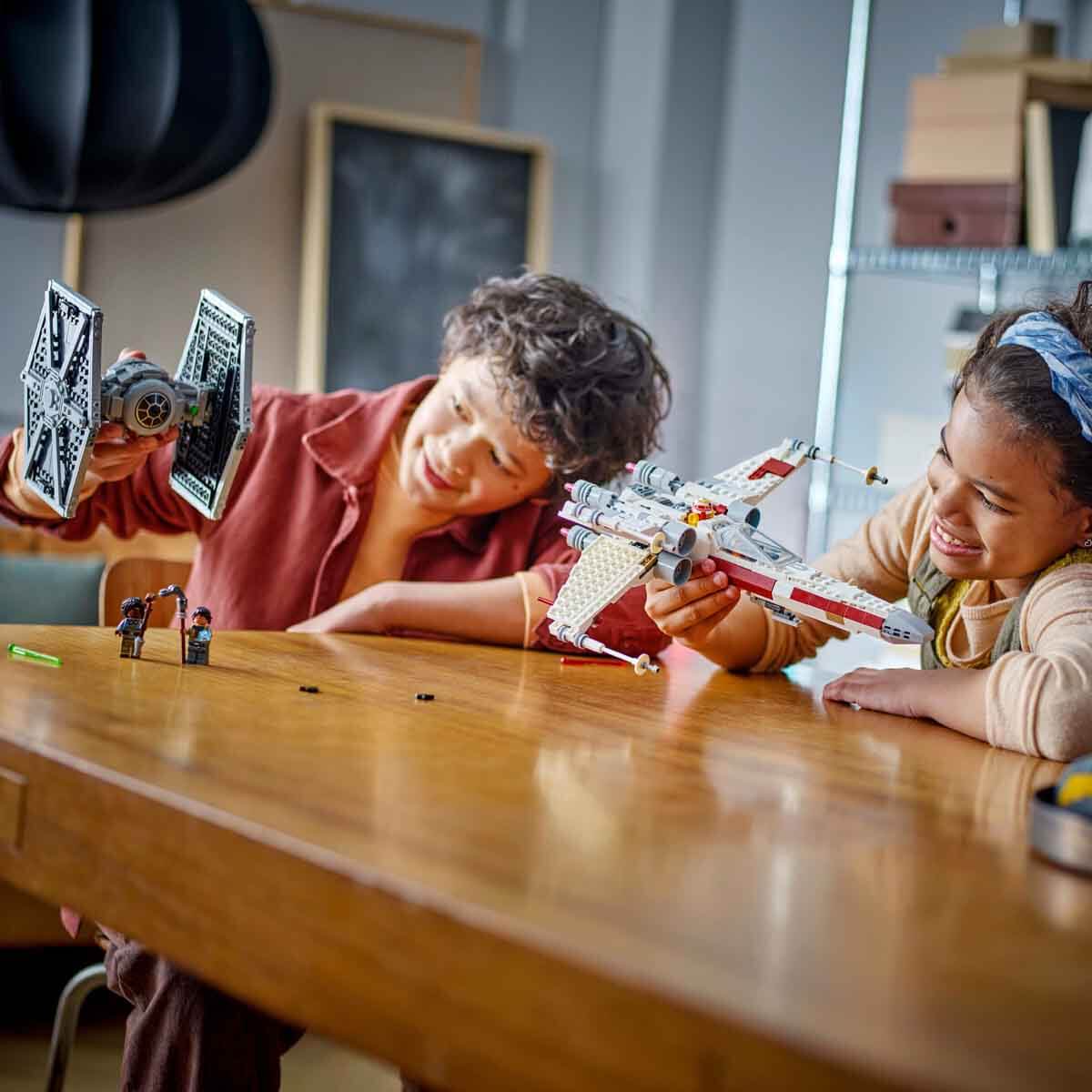 TIE-wing’ ve ‘X-fighter’ inşa edilebilen Star Wars oyuncak araçları… Her starfighter'ın bir LEGO minifigürü için açılan bir kokpiti ve 2 yaylı atıcısı bulunur ve X-wing'in kanatları ayarlanabilir.