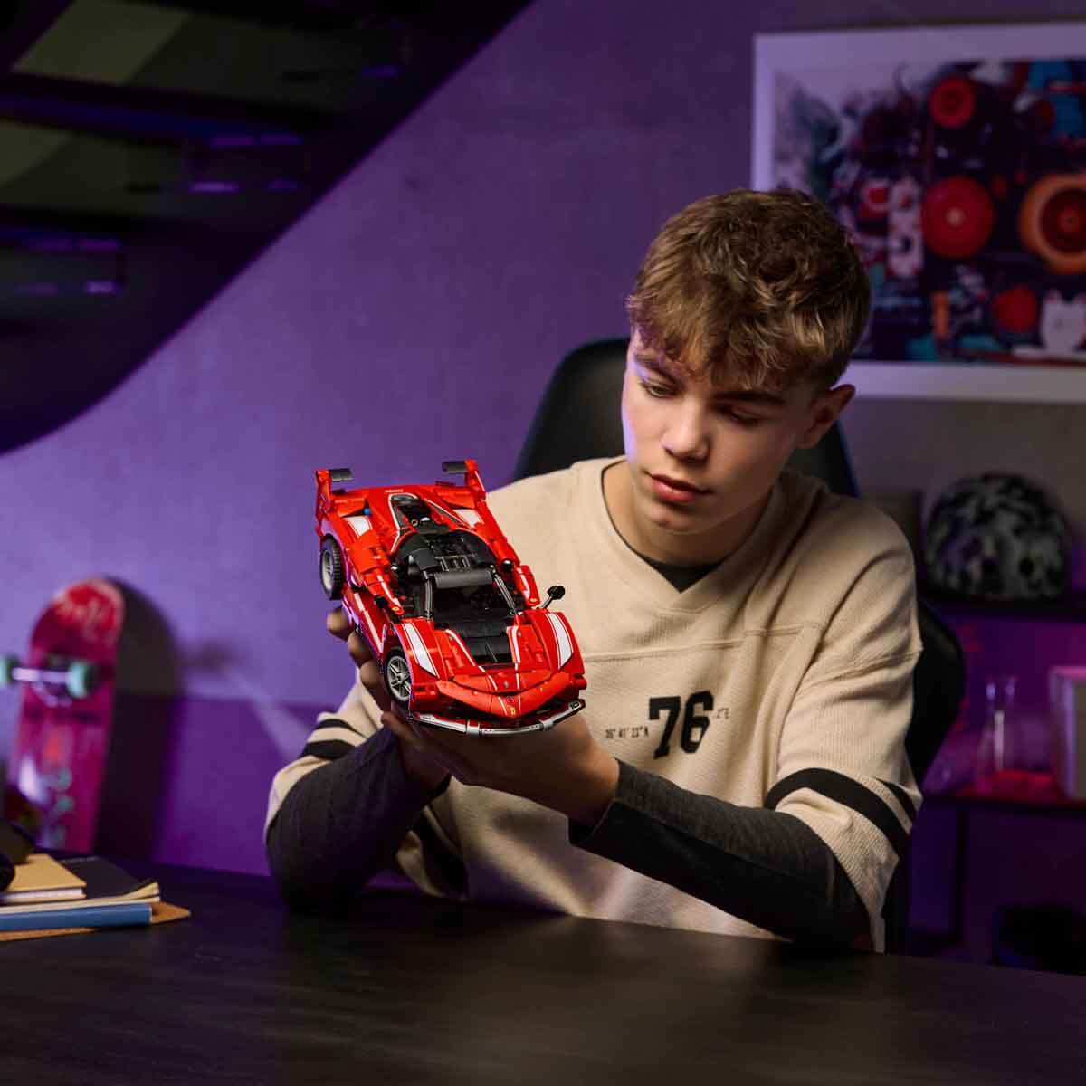 10 yaş ve üzeri erkek ve kız çocuklara yönelik LEGO Technic Ferrari FXX K model araba seti ile genç araba tutkunlarına aksiyon dolu bir yapım projesi verin!