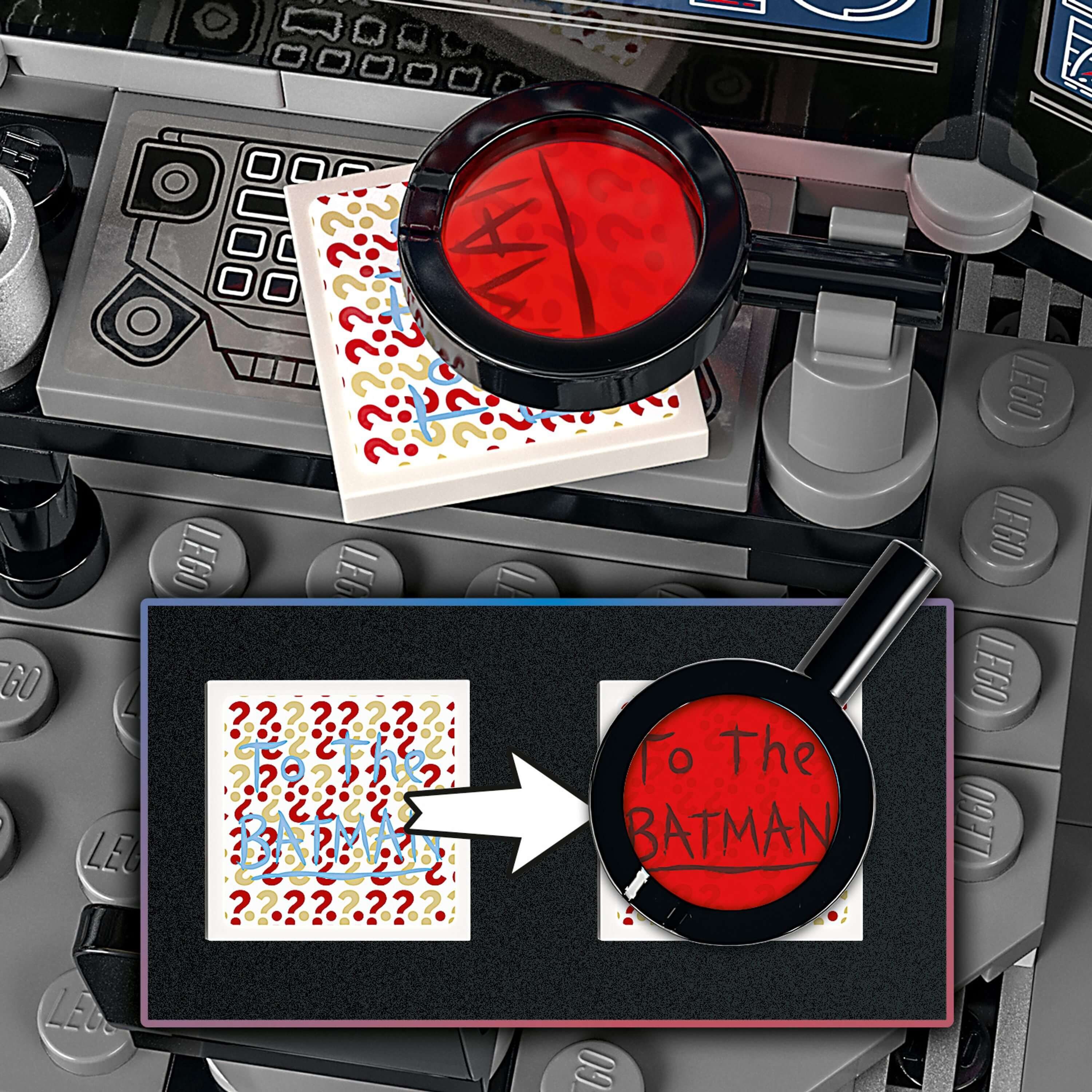 Riddler’ın şifreli mesajlarını içeren 3 parça, ancak çocuklar ipuçlarını ortaya çıkarmak için özel büyüteci kullandığında okunabilir.