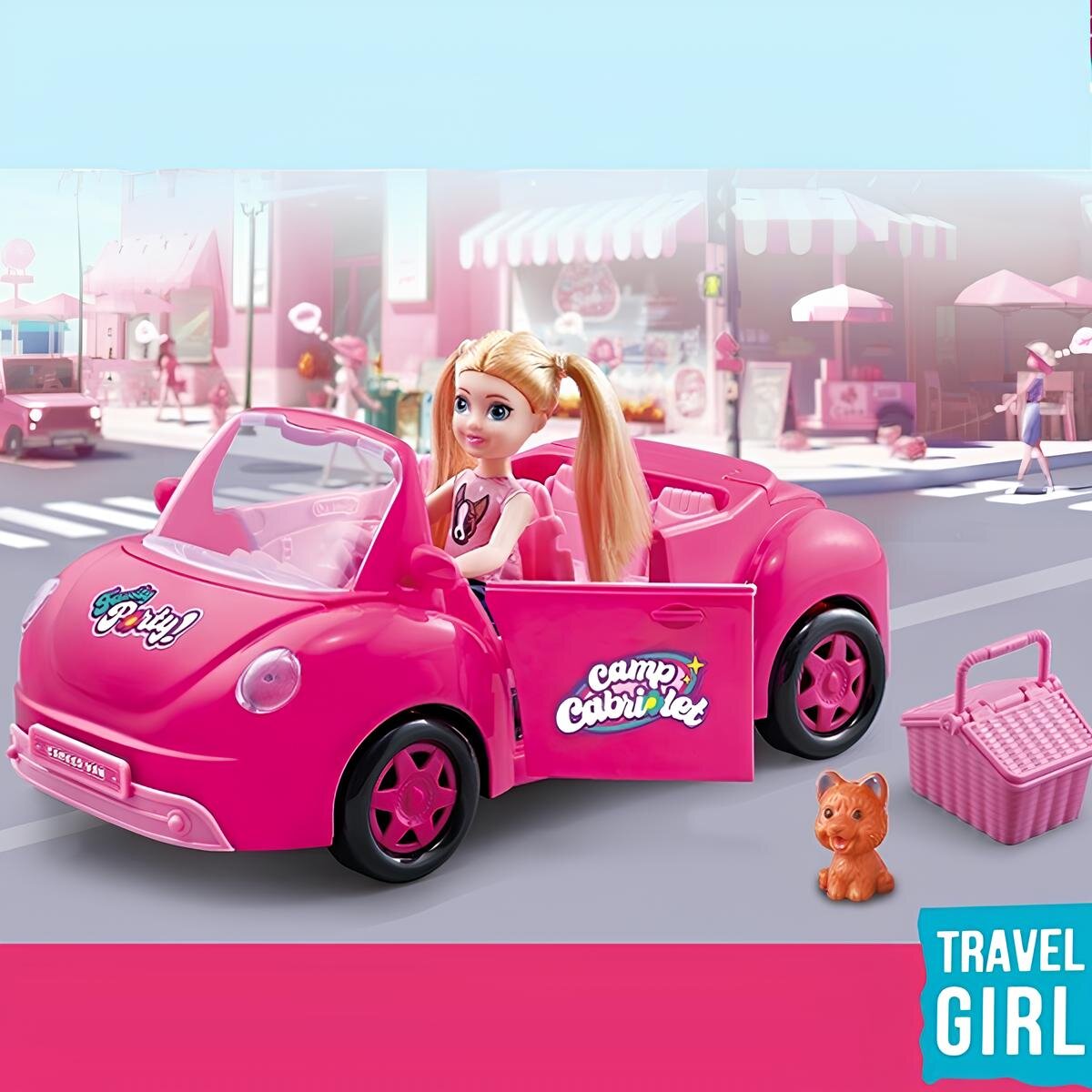 Çocuğunuzun yola çıkmasına ve bu sevimli mini bebek, evcil köpeği ve sevimli, pembe üstü açılır kruvazörüyle hikâye anlatma maceralarını keşfetmesine izin verin.