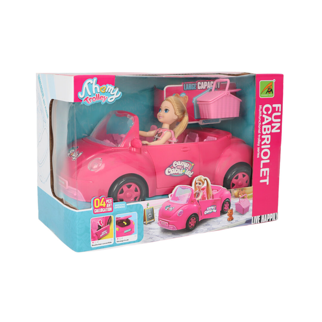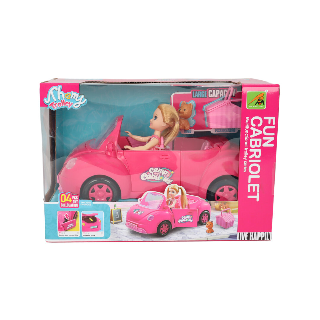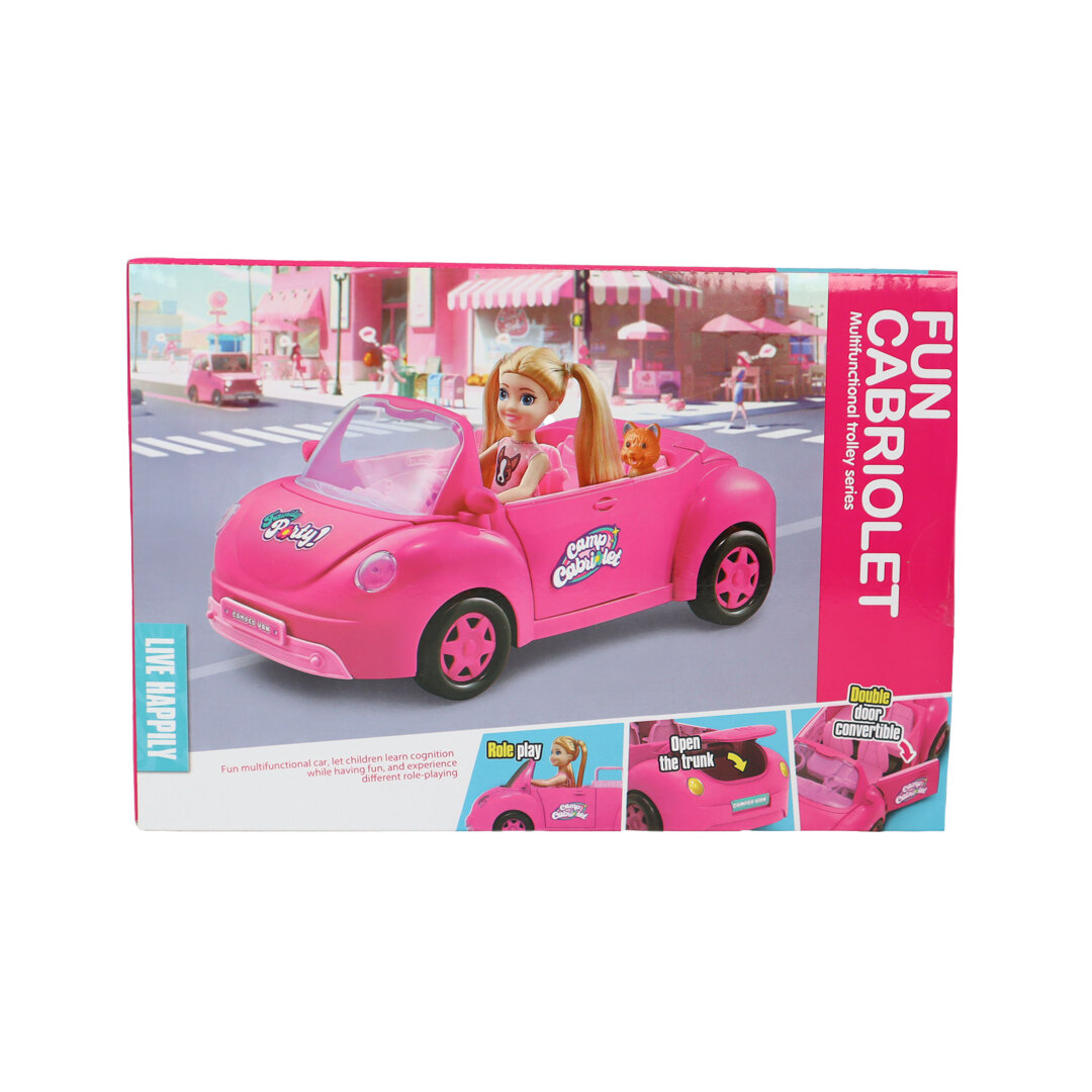 Pakette oyuncak bebek ve köpeğin bulunduğu bir Cabriolet araba yer alıyor.