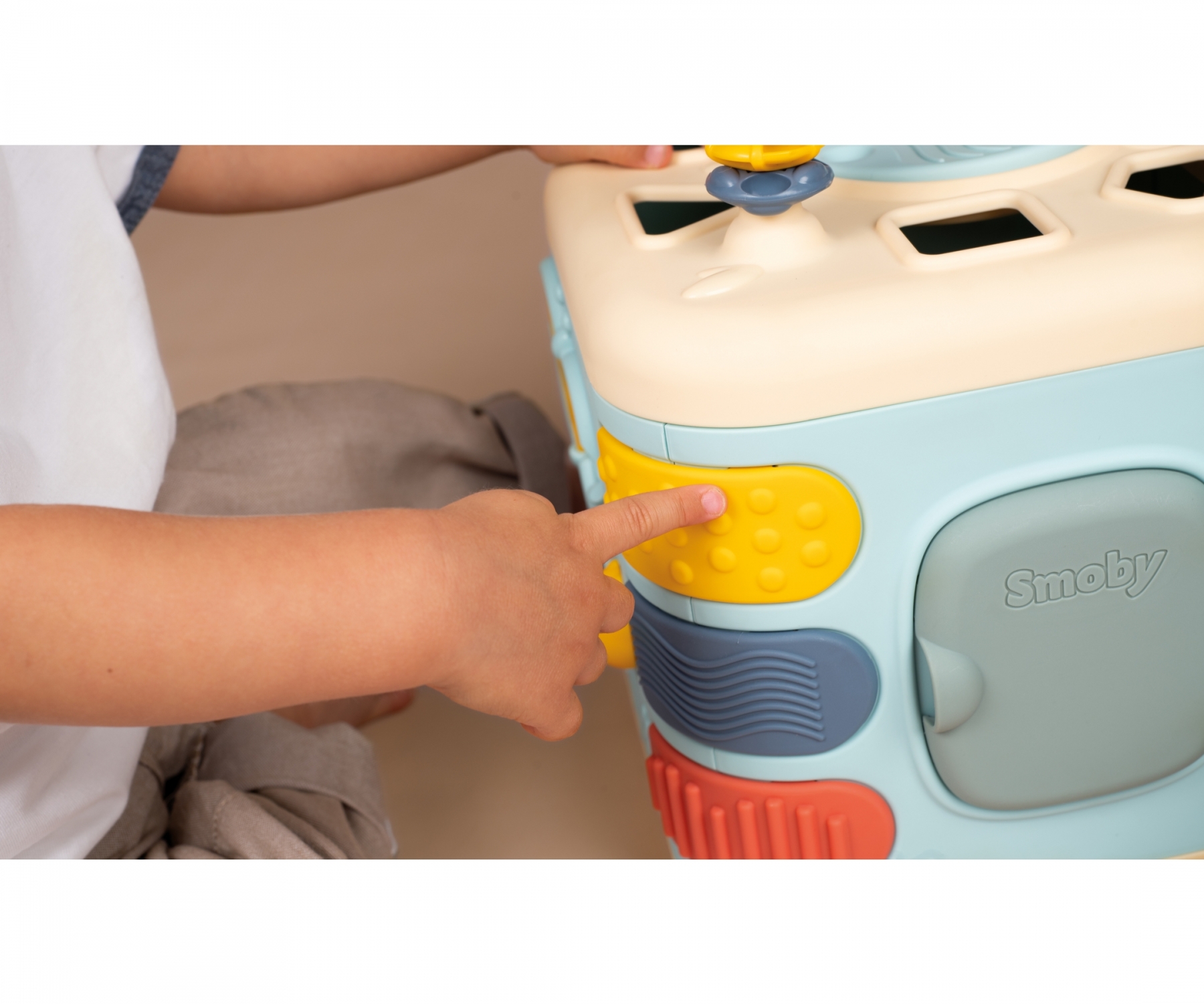 5 taraflı Little Smoby motor küpü, 12 aylık ve üzeri çocuklar için ideal bir arkadaştır: çok sayıda mekanik işlevi, özellikle küçüklerin motor becerilerini geliştirir ve aynı zamanda bolca eğlence ve keşif sevinci sunar!