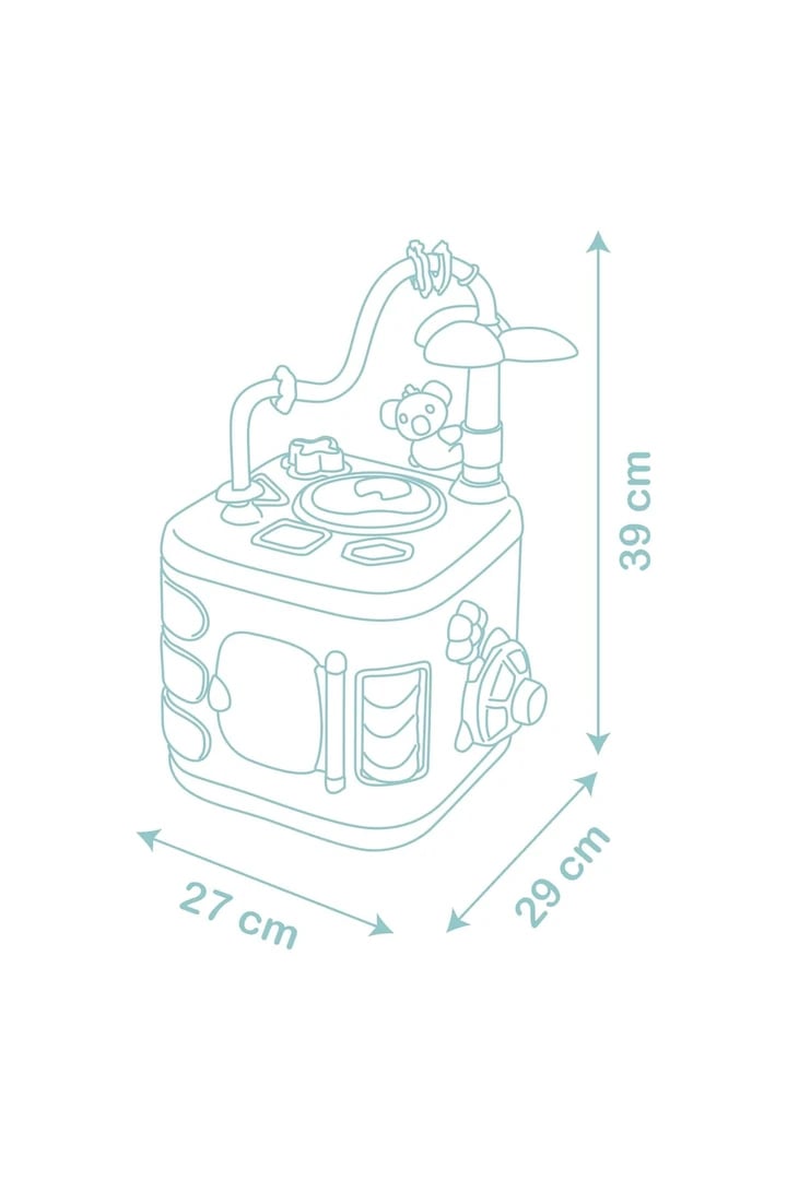 Aktivite küpünün 13'ten fazla farklı oyun seçeneği, yavruların birçok farklı şekilde deneyebilmesini sağlar: Şekilleri ayırmak için bir fişli oyun, bir motor halkası, dişliler, bir kürek çarkı, dönen bir koala, bir saklambaç kaplumbağası, bir çiçek ve "crick-crick" sesi çıkaran bir uğur böceği ve hissedilip kavranması için çeşitli yüzey yapıları vardır. Küçük kapıdan, fişli oyun şekilleri çıkarılabilir.