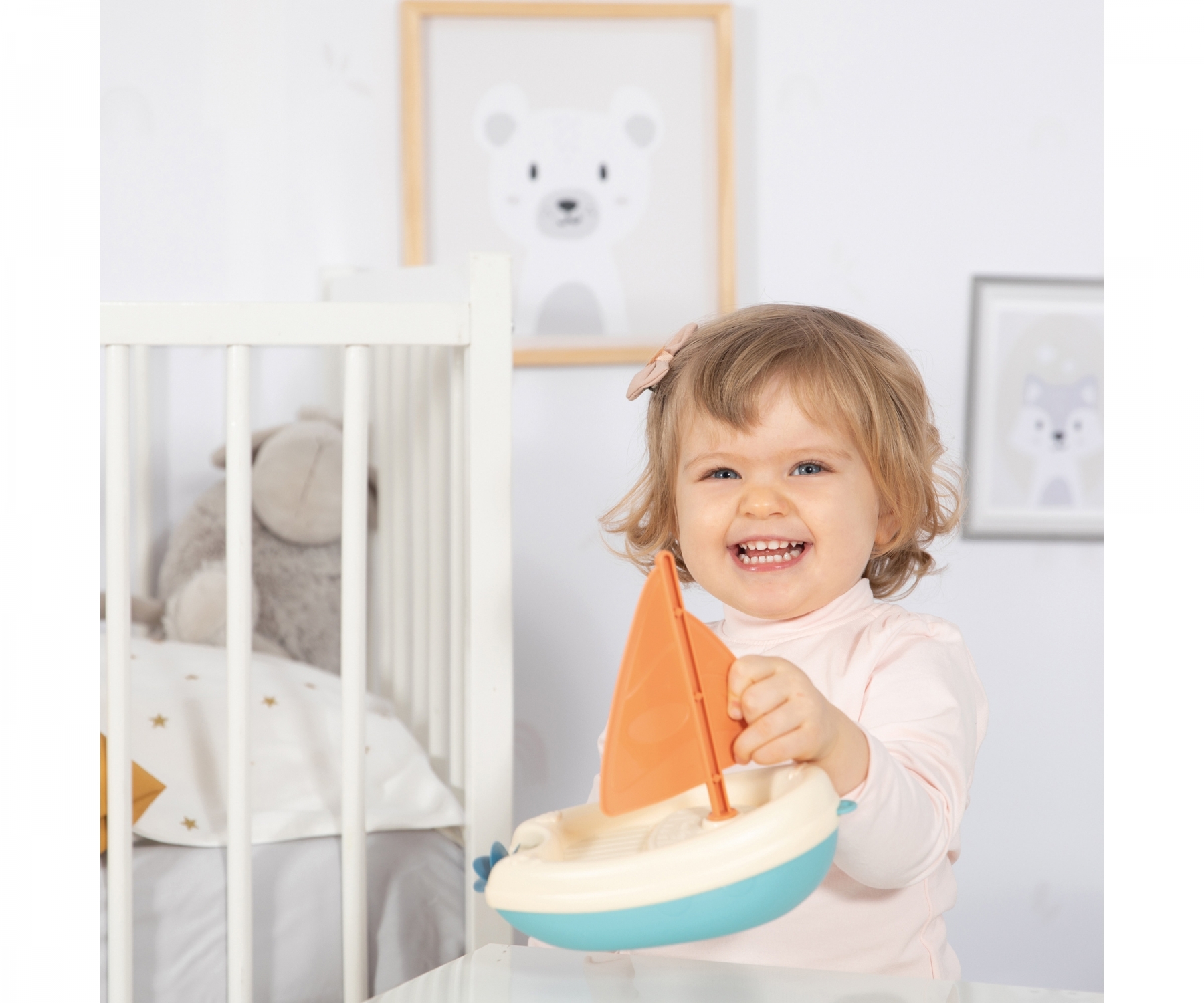 4 farklı şekilde toplam 8 oyun parçası, ilgili girintilerden sepete yerleştirilebilir. Yelkenli tekneyle etrafa su sıçratmak gerçekten eğlenceli!