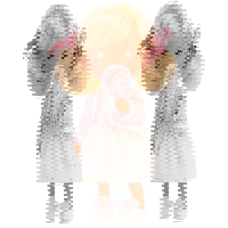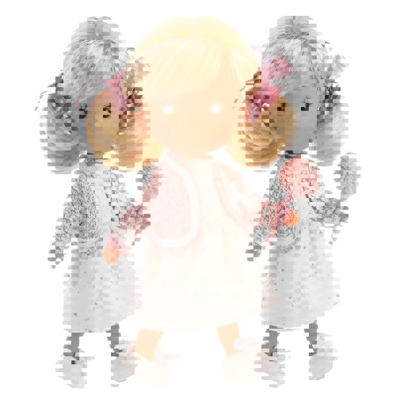 Oyuncak bebek dekoratif bir karton kutu içinde paketlenmiştir.