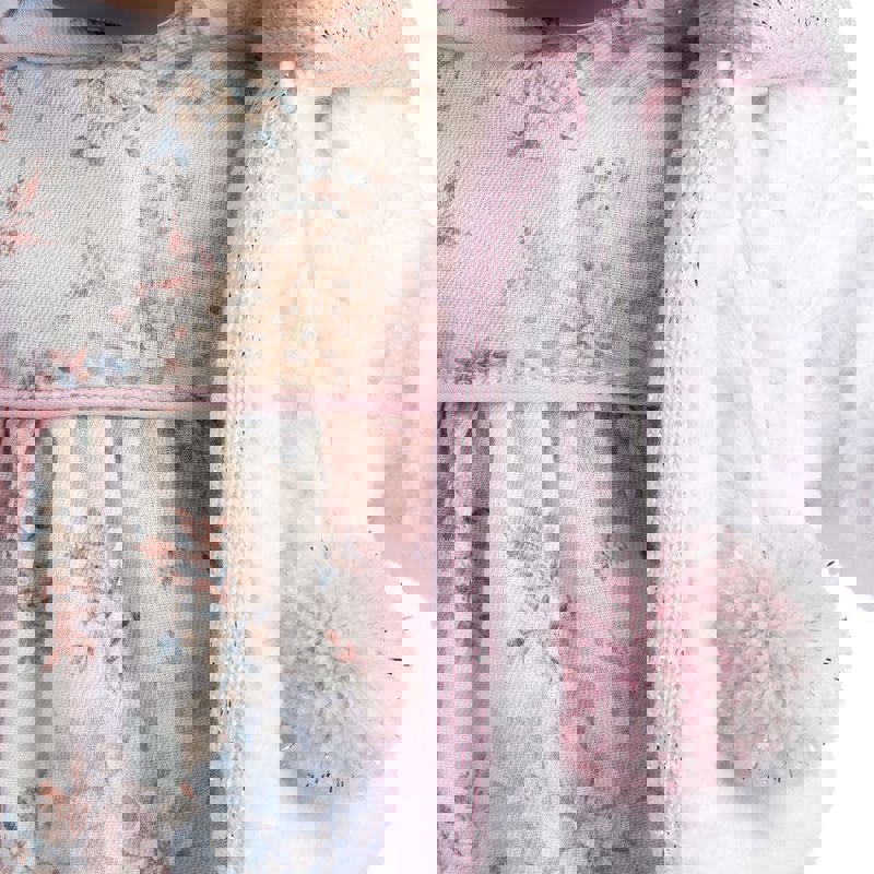 harika, egzotik bir güzelliğe sahiptir. Oyuncak bebek, çiçekli bir elbise
