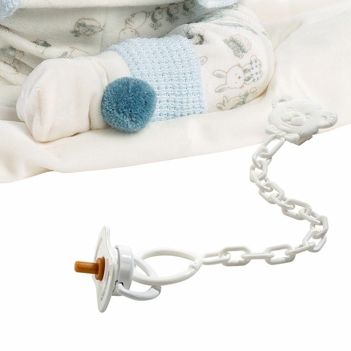 Set, oynarken bebeği koyabileceğiniz veya uyumak için üzerini örtebileceğiniz beyaz bir battaniye içerir.