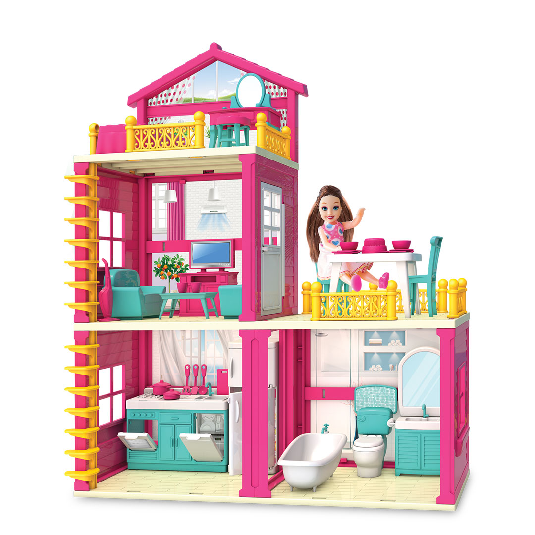3 kattan oluşan ve ayrıntılı tasarımı ile göz dolduran bu Düşler Evi’ne bayılacaksın! Toplam 2 oda, mutfak, banyo ve harika bir balkona sahip bu ev ile birbirinden güzel evcilik oyunları seni bekliyor.